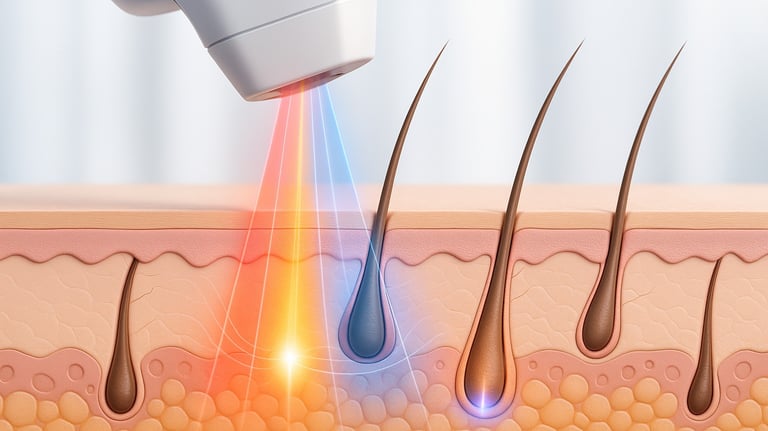 La tecnologia laser BE-MATRIX utilizza diverse lunghezze d’onda per colpire in modo preciso il bulbo pilifero, trasformando la luce in calore. Questo calore disattiva gradualmente le cellule responsabili della crescita dei peli, senza danneggiare la pelle circostante.